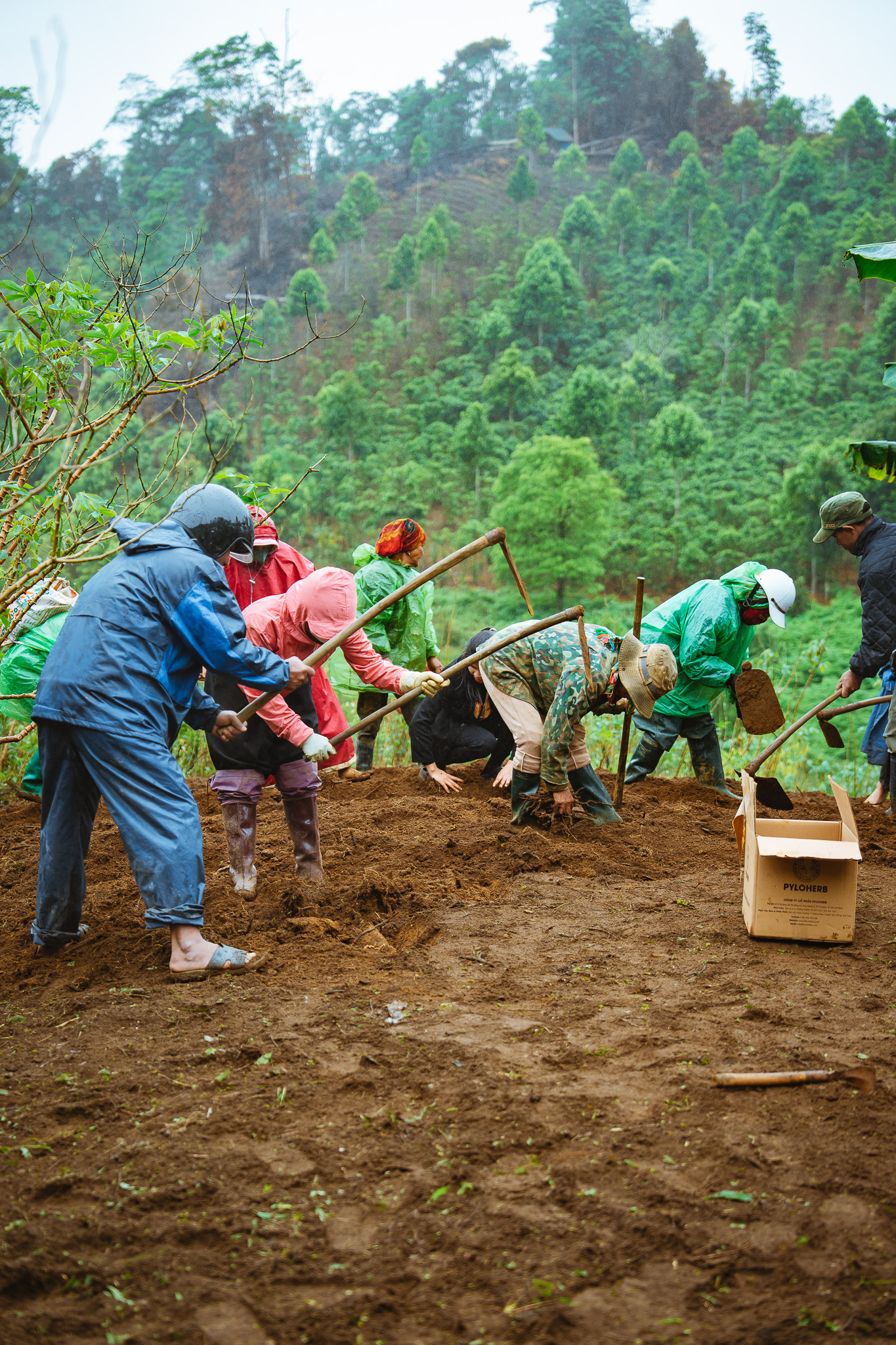 PyLoHerb phối hợp với chính quyền xã Đăk Tăng tổ chức hướng dẫn phương pháp trồng và chăm sóc sâm dây Ngọc Linh. Loài sâm này sẽ phát triển tốt nhất trên đất tơi xốp, dưới tán rừng râm mát, với mỗi hố trồng sâu từ 15–20 cm và khoảng cách giữa các cây từ 30–40 cm. Ngoài ra, thời tiết mưa phùn nhẹ là điều kiện lý tưởng để cây giống bén rễ và phát triển khỏe mạnh.