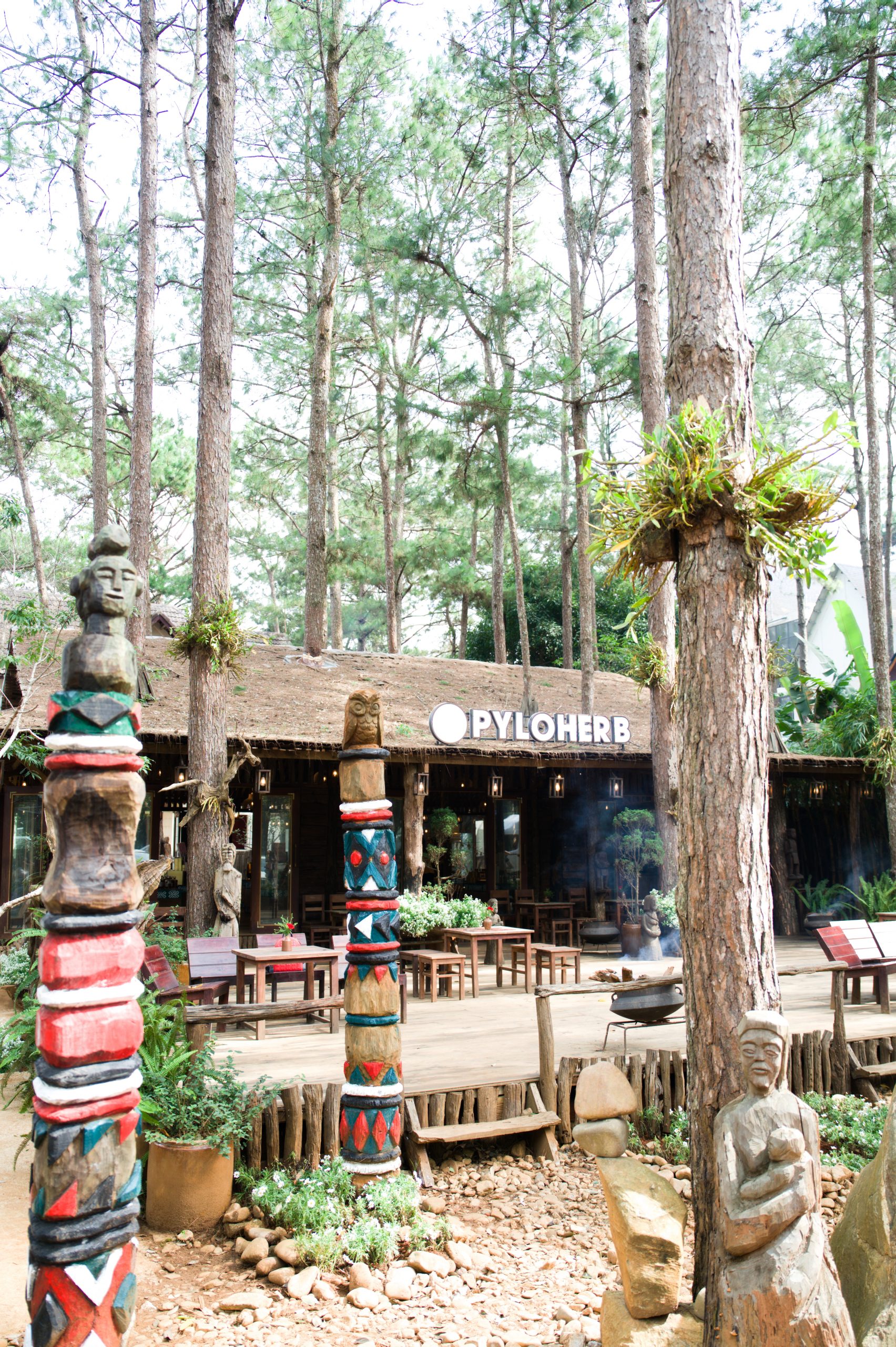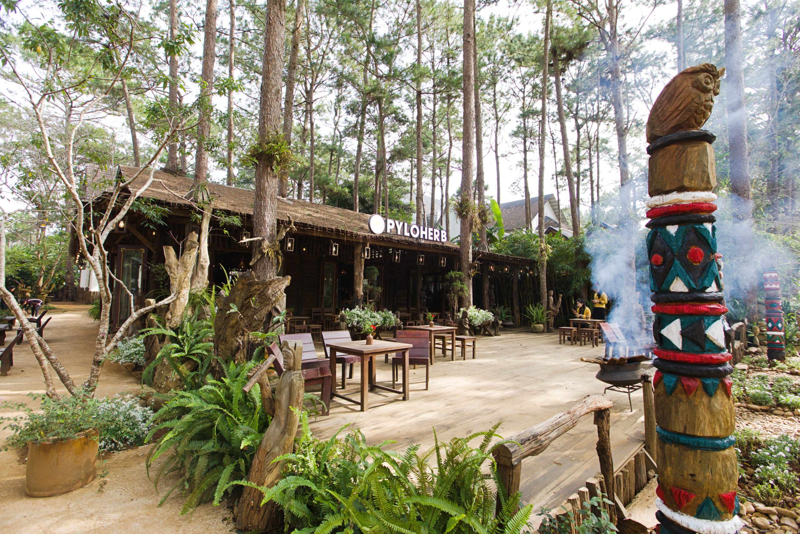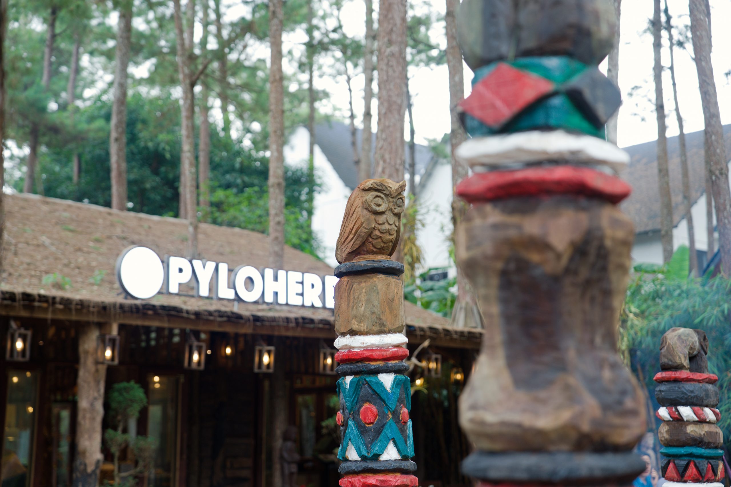 Việc dựng trụ gỗ ở đây không nhằm phô trương, mà là cách PyLoHerb giữ lại hơi thở của núi rừng giữa lòng phố thị. Bởi lẽ, trong văn hóa Tây Nguyên, trụ gỗ (thường được đặt trước nhà, bên cầu thang hay tại sân lễ hội) là biểu tượng thiêng liêng.