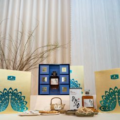 Sự hiện diện của rượu, trà, bánh còn tượng trưng cho mong ước sung túc, ấm no. Ngoài ra, hộp quà còn được kết hợp với khô gà thảo mộc, mứt sâm và hạt Hachi giàu Omega giúp bổ sung dinh dưỡng, tăng cường năng lượng cho đầu năm mới.