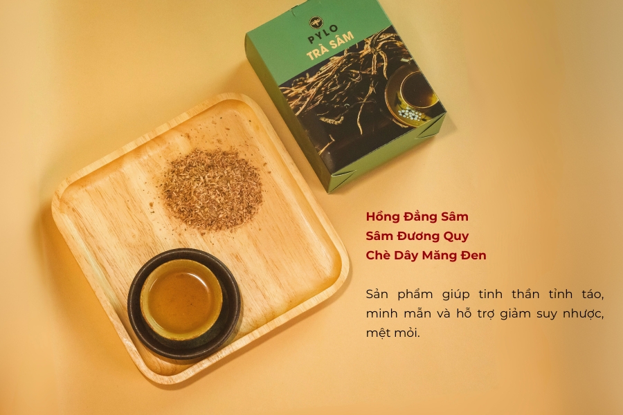 Trà Sâm PyLo là một sản phẩm sử dụng các thảo dược thiên nhiên từ 100% Sâm Dây Ngọc Linh và sâm Đương Quy loại 1, kết hợp cùng Chè Dây bản địa rất tốt cho sức khỏe và tiết kiệm thời gian pha chế. Sản phẩm này có rất nhiều công dụng tuyệt vời đối với sức khỏe như: