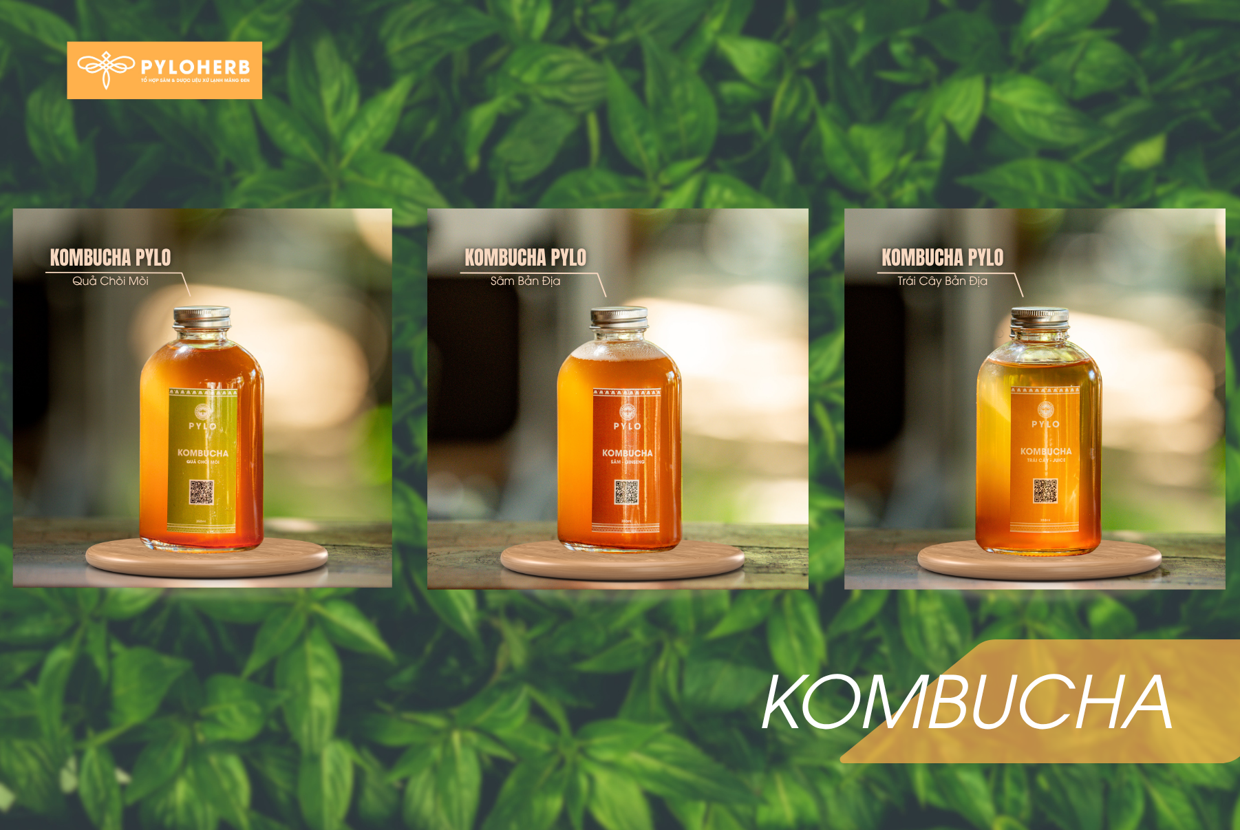 Trà Kombucha PyLo được chế biến từ hồng trà lên men, kết hợp với các loại trái cây và dược liệu thiên nhiên, mang đến ba hương vị độc đáo và hấp dẫn:
